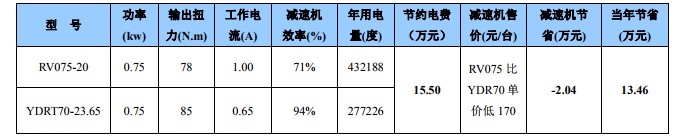 實例:清遠(yuǎn)某陶瓷釉線 120 臺,用齒輪機(jī)替代 RV 方箱電費節(jié)省實例。