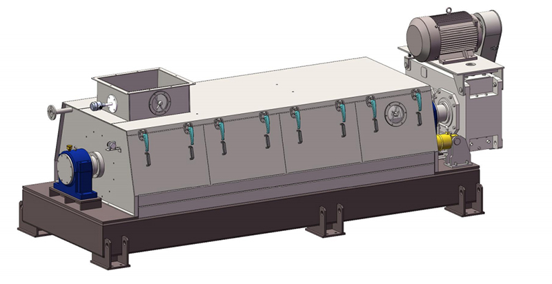 我公司研發(fā)的這款壓榨機(jī)是具有優(yōu)越脫水干度的新型單螺旋壓榨機(jī),由機(jī)架、固定篩網(wǎng)、可移動(dòng)篩框、螺旋軸、進(jìn)出料斗、罩殼、驅(qū)動(dòng)裝置及液壓系統(tǒng)組成。篩板采用單層篩板,篩板上的孔為錐形孔結(jié)構(gòu),更有利于游離液體從孔中排出,防止物料堵塞。通過實(shí)時(shí)監(jiān)測(cè)和自動(dòng)控制螺旋軸的轉(zhuǎn)矩,保證物料在出口的最佳干燥度和穩(wěn)定性,以滿足客戶的不同要求。該機(jī)還可用于用于餐廚垃圾、廚余垃圾等有機(jī)物含量豐富、水分含量高、易腐爛物質(zhì)的脫水處理。